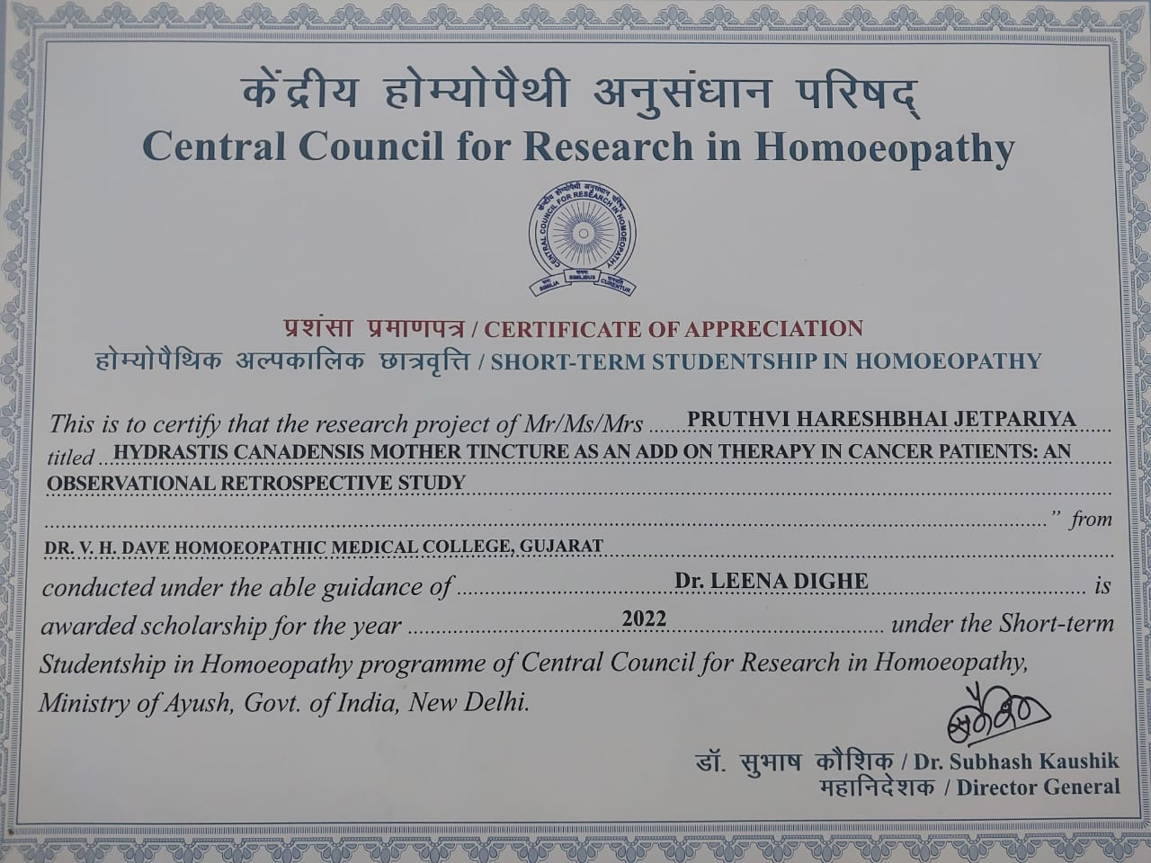 Award of STSH Scholarship During World Homoeopathy Day Celebaration 2024 At New Delhi![]() |