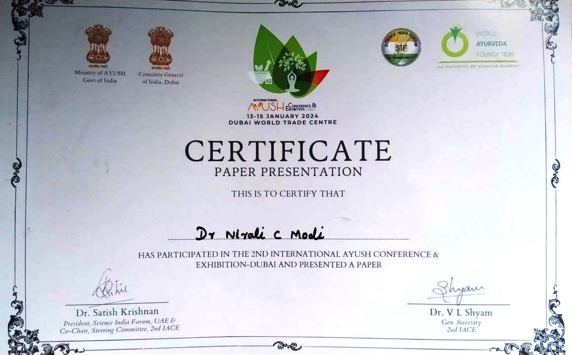 Certification Of Faculty In 2nd International Ayush conference - Dubai![]() |